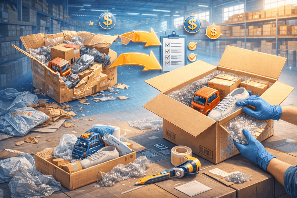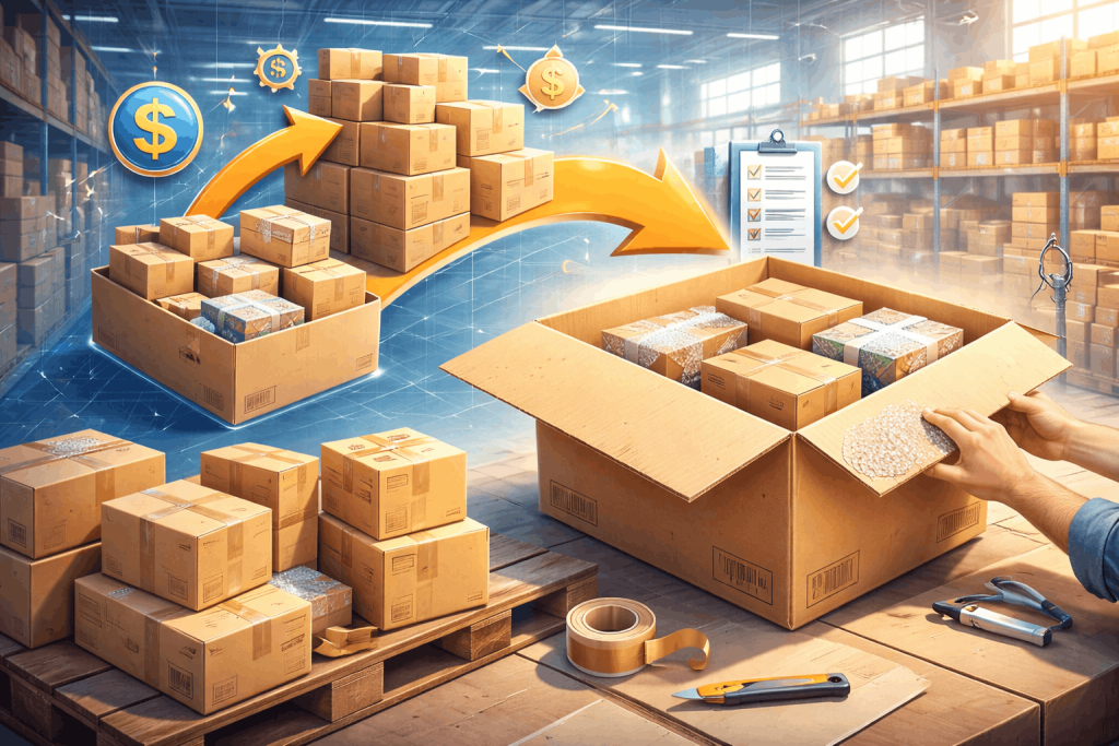 A professional repacking service removes unnecessary outer packaging and restructures items more efficiently inside one box. This reduces total volume and, in many cases, reduces shipping fees.